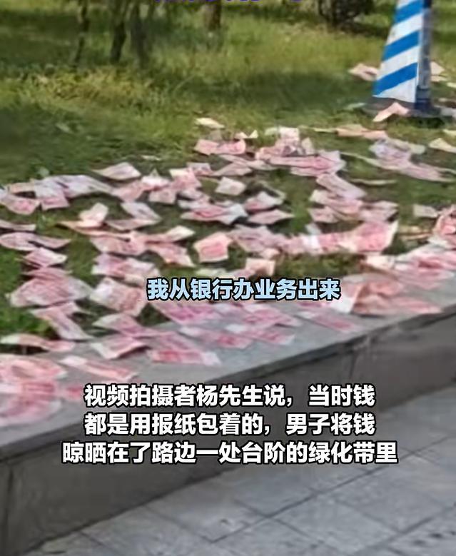 - 男子将大量现金在绿化带摊开晾晒!目击者:那一堆估计有10万 网友热议纷纷