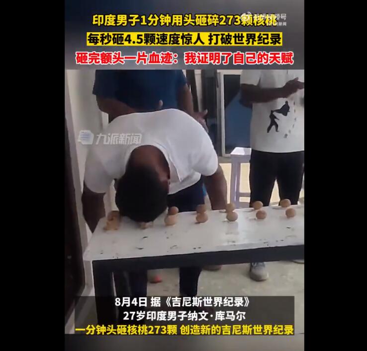 (原标题:印度男子1分钟用头砸碎273颗核桃,创造新的吉尼斯世界纪录)