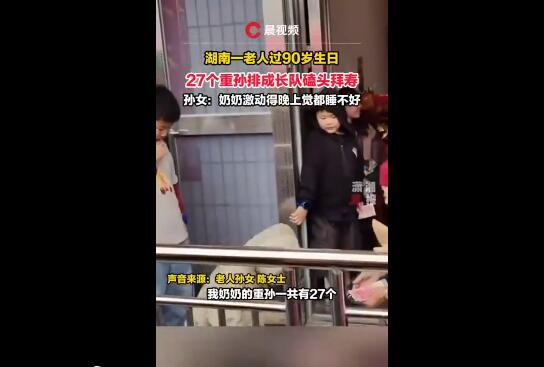 【27个重孙排队给老人磕头拜寿 】10月3日,湖南岳阳,老人过90岁生日,27个重孙排成长队磕头拜寿。
