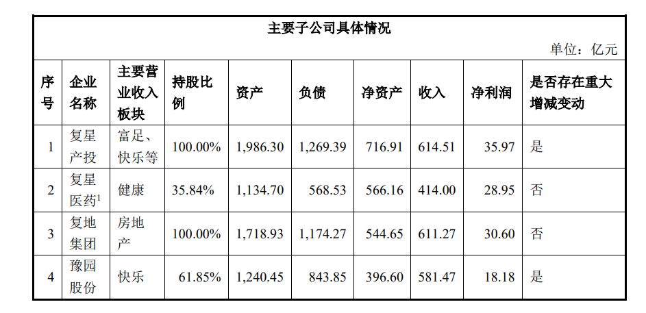 截至2023年末,复星高科主要有4家子公司,分别为:上海复星产业投资有限公司、复星医药、复地(集团)股份有限公司及豫园股份。