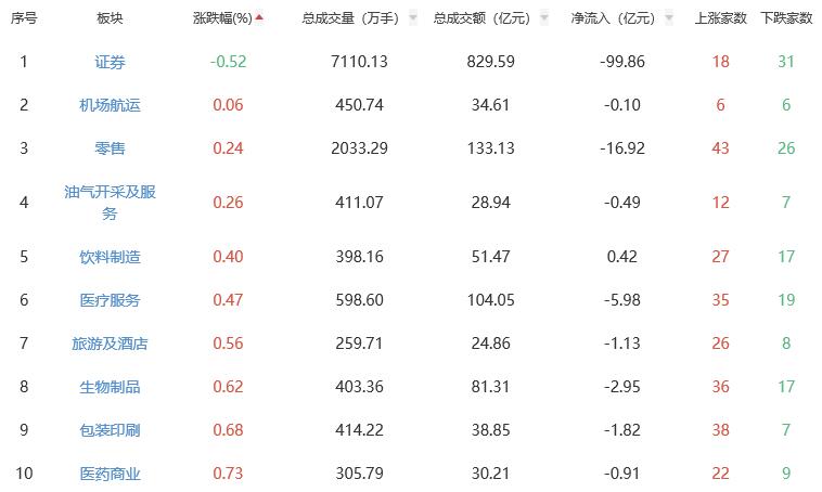A股市场板块涨跌幅排行