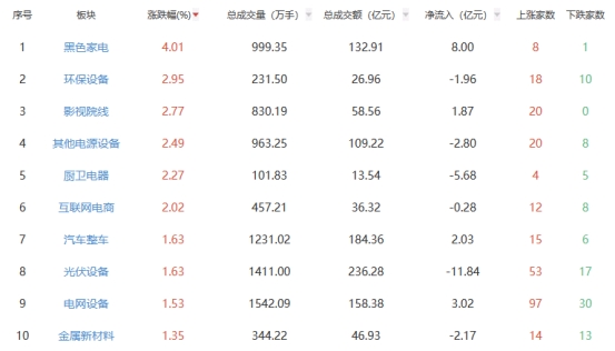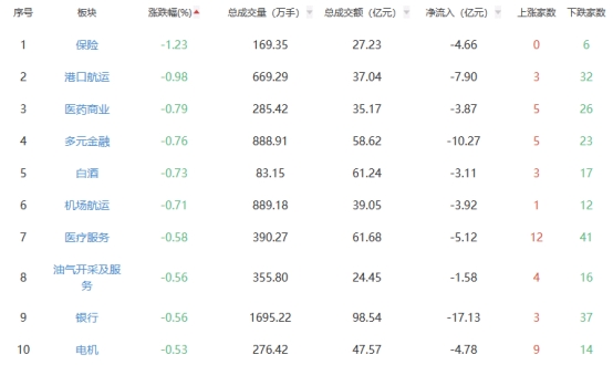 盘面上,黑色家电、环保设备等板块涨幅居前,保险、港口航运等板块跌幅居前。