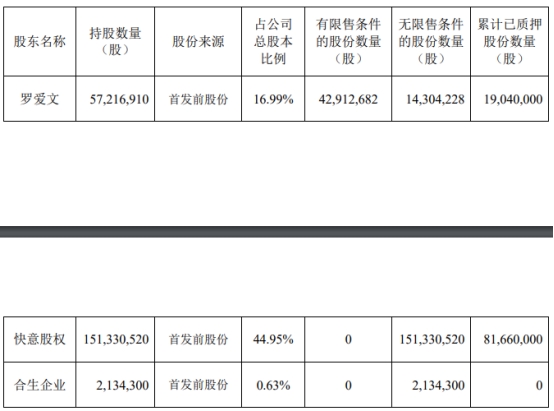 罗爱文及其一致行动人快意股权、合生企业合计持有快意电梯股份210,681,730股,占快意电梯总股本62.57%。快意股权持有快意电梯44.95%的股权,为快意电梯的控股股东。罗爱文直接持有快意电梯16.99%的股权,为快意电梯的实际控制人。