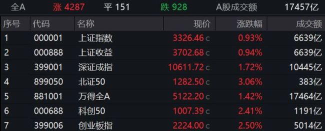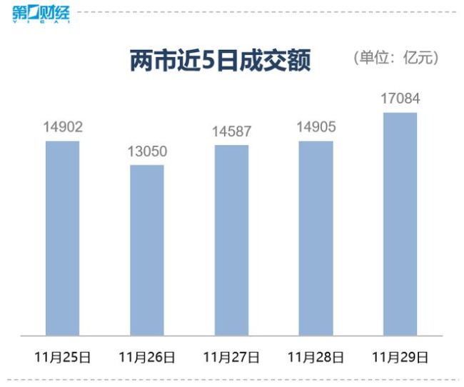 11月29日,A股三大指数集体上涨,截至收盘,沪指涨0.93%,深成指涨1.72%,创业板指涨2.5%。全市场上涨个股超过4200只,沪深两市成交额突破1.7万亿元。