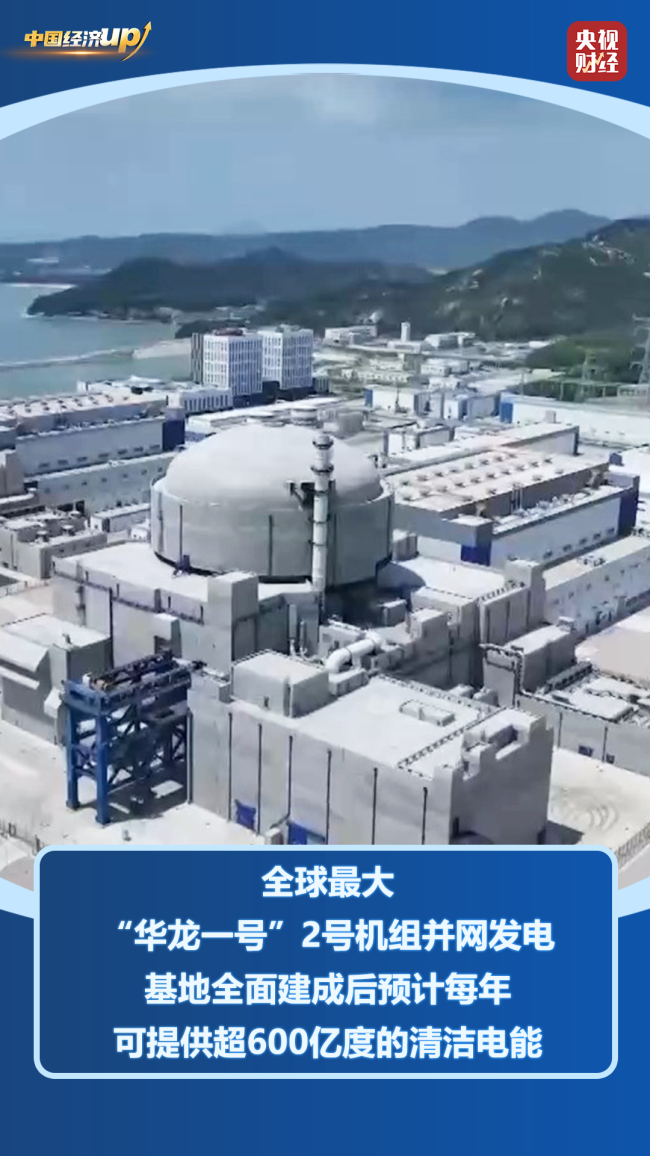 全球最大“华龙一号”核电基地——福建漳州核电2号机组首次并网成功,开始向电网送电,标志着“华龙一号”批量化建设取得重大进展。漳州核电规划建设6台“华龙一号”核电机组,全面建成后预计每年可提供超600亿度的清洁电能,满足福建南部地区厦门市、漳州市用电总和的75%。