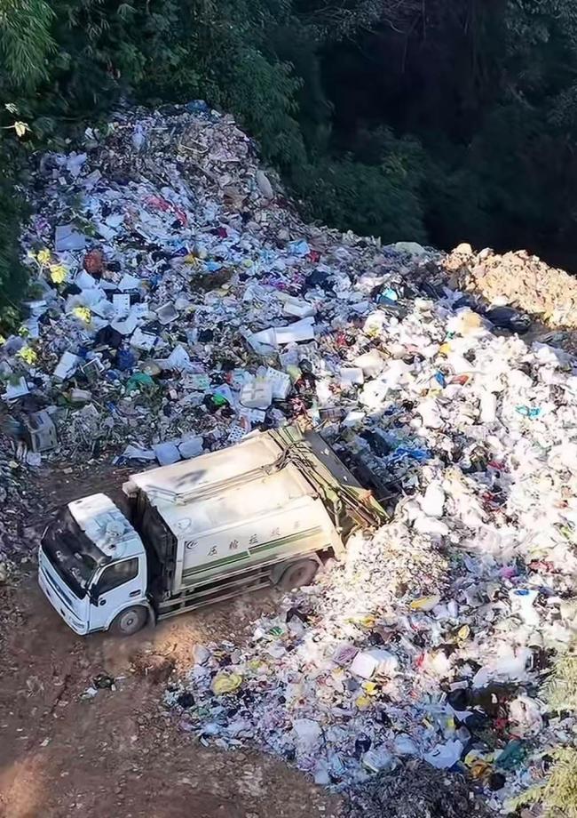 网友通过无人机在距离澜沧县城33公里处找到了垃圾倾倒点。现场异臭浓烈刺鼻,垃圾规模庞大,从迹象判断刚被丢弃不久。这些垃圾下方是一个深邃的天坑溶洞。视频画面显示,一辆垃圾车在该区域违规倾倒垃圾时被无人机抓个正着。
