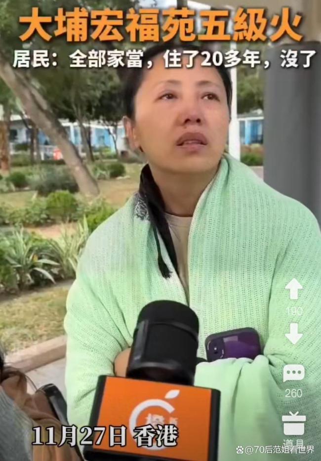 一位年轻女子在镜头前崩溃痛哭,她的全家人都在里面,电话打不通。另一位中年女子双手抱胸,一脸无助地告诉记者,她们一家人在宏福苑住了20多年,所有家当和努力都化为灰烬,幸好在外上班躲过一劫,但家中宠物肯定已被烧毁。这位中年女子虽然失去了财产,但至少家人平安,而那些失去亲人的家庭则永远无法挽回。