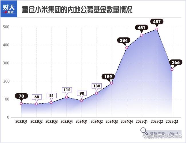 小米股价变动与公募基金的操作密切相关。自2024年二季度起,重仓小米的基金数量显著增加,到2025年二季度末达到487只。这一时期,小米股价涨幅高达301%,并在二季度末进入主动权益基金前十大重仓股名单。然而,到了第三季度,重仓小米的基金数量骤降至266只,减少幅度接近五成。随着基金撤离,小米股价在三季度末冲击历史高点未果后开始深度回调,并从主动权益基金的前十大重仓股中消失。