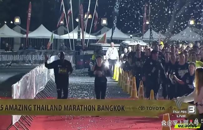 电视转播画面显示,苏提达的成绩是2小时31分多,属于完赛级成绩,在大众跑者中算是偏慢或入门级的。冲过终点线时,她显得很放松,显然没有拼尽全力。基普乔格也是一样,估计他只是象征性地参与活动。