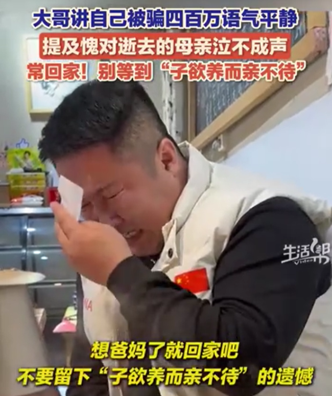 11月30日,山东济南的街头有些冷。面对镜头,这位大哥回忆起自己被骗四百多万元的经历时,声音平稳得近乎淡然,可真正提到母亲的那一刻,他整个人突然绷不住了,泪水止不住地往下掉。