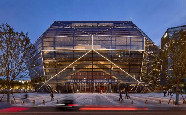大会举办地——上海西岸国际会展中心也备受关注。这座建筑位于徐汇滨江核心区,以“璀璨宝石”为设计意象,外观如同经过精细切割的钻石,多面玻璃幕墙在光线下折射出晶莹色泽。设计由美国SOM事务所完成,借助AI辅助,在形态、性能与成本之间取得平衡,使建筑既理性又充满视觉张力。