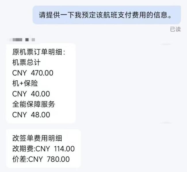 平台客服人员解释,汤先生于2025年12月16日购买了一张12月30日从北京大兴飞往湖北宜昌的中国国航航班机票,当时花费总计为558元(含机票470元、保险40元、全能保障服务48元)。12月26日早上6时40分,他提交了改签至27日起飞的申请。由于飞行时间临近,机票价格实时浮动,新票价高于原价,因此产生了780元差价及114元手续费,共计894元。