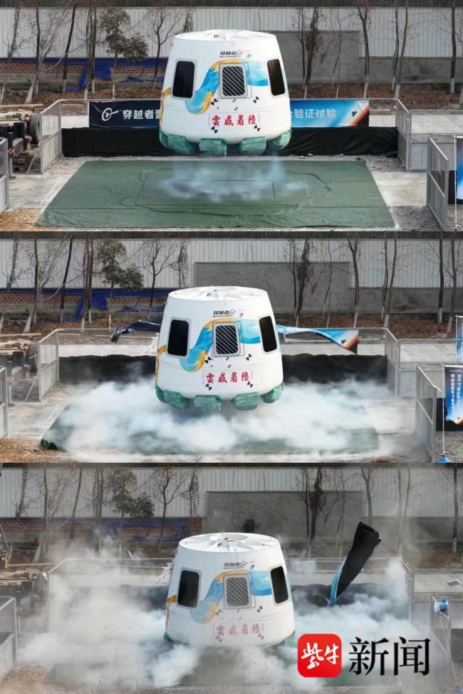 1月18日,“穿越者”公司进行了中国商业航天首次载人飞船全尺寸试验舱着陆缓冲试验,其自主研发的“云感着陆”系统在试验中表现卓越。从公布的现场画面来看,全尺寸载人飞船试验舱还比较简单,舷窗效果目前由颜料绘制而成。