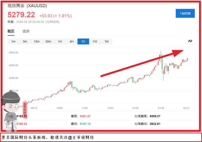 最近的黄金行情已经非常疯狂。2024年全年涨幅超过35%,2025年大涨80%,2026年开年不到两个月,又涨了12%,直接站稳5280美元/盎司的历史新高。线下金店的金条被抢断货,银行黄金理财额度秒空,无数散户冲进场追高。就在所有人都在猜测金价顶点时,专家抛出7000美元的极端预判,瞬间震动整个投资圈。