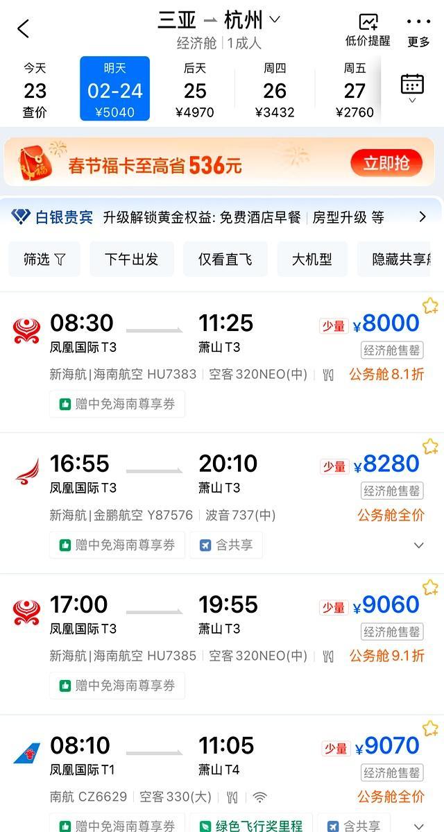 打开订票软件,你会发现现实比段子更残酷。经济舱机票价格飙升,公务舱票价动辄上万。一张从三亚到杭州的直飞票甚至高达八千多块,仿佛是赎身券。这一切都在提醒人们,从天堂返回人间需要付出高昂代价。
