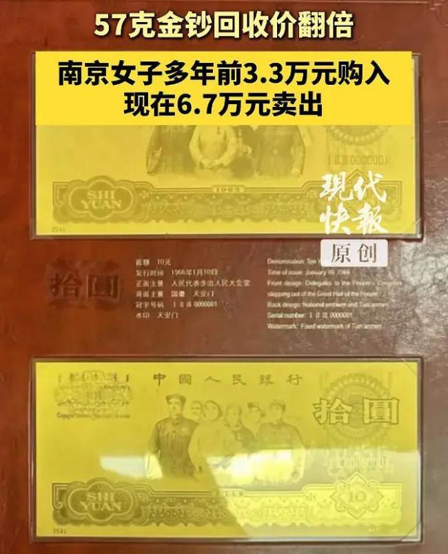 该女子持有的纯金纪念钞总重57克,按2026年3月3日约1175元/克的回收价计算,6.7万元的报价属于正常市场行为。值得注意的是,典当行完全未考虑其“纪念钞”的收藏属性,仅以黄金原料计价。绝大多数黄金制品的回收现实也是如此。除非持有中国人民银行发行的法定纪念币,否则金钞、金章、工艺金条一律按“旧料金”处理——含金量多少,就按当日金价乘算。“限量发行”、“大师设计”的溢价在变现时归零。