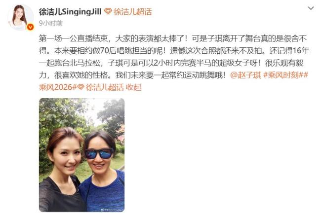 4月11日,徐洁儿发文回应赵子琪被淘汰,表示非常不舍。她提到两人曾一起跑台北马拉松,称赞赵子琪乐观有毅力,希望未来能常约运动跳舞。