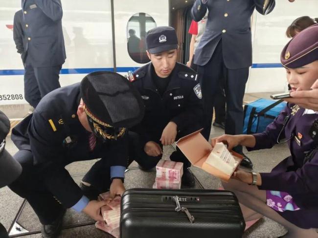 张蕊立即联合乘警赶到现场,在全程录像的情况下开箱查验,发现箱内除衣物、香烟外,还装有57万元现金。由于涉及金额较大,张蕊带领工作人员对现金及物品逐一清点并封存保管,同时启动站车交接手续办理工作。