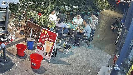 视频显示,事发时间为晚上8时10分许,在一幢建筑前方,四个人围坐在一起打麻将,桌旁还站着一位围观的大妈。突然空中传来“咔哒”一声响,只见围观的大妈迅速向左离开原地,而就在她躲开的一刹那,一台空调外机已落在她原来的站立处,砸在地上发出巨响,呲呲冒出白烟。此时,坐着的四人也起身跑开。