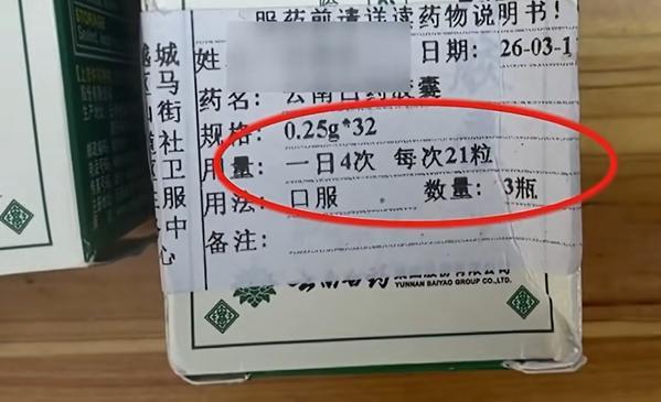 近日,浙江绍兴的应大妈因脚部受伤就医时遇到了麻烦。她被电动车压到脚后,在越城区马山街道社区卫生服务中心接受治疗。医生给她开了几瓶云南白药胶囊,并指示一日四次,每次21粒。当应大妈对剂量表示疑问时,药房工作人员告诉她按照医嘱服用。